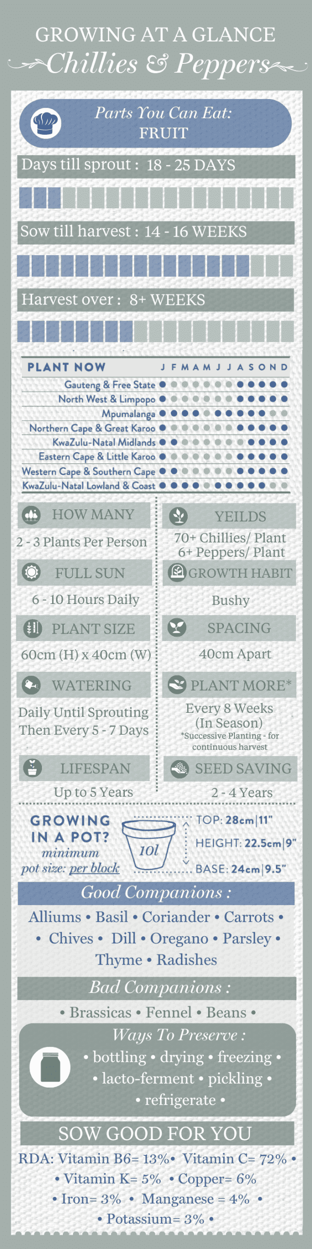 FACT:Â The same chemical that makes Chillies hot (Capsaicin) also helps boost the metabolism and burn calories in our bodies! If looked after, a chilli plant will keep producing for up to 5 years.